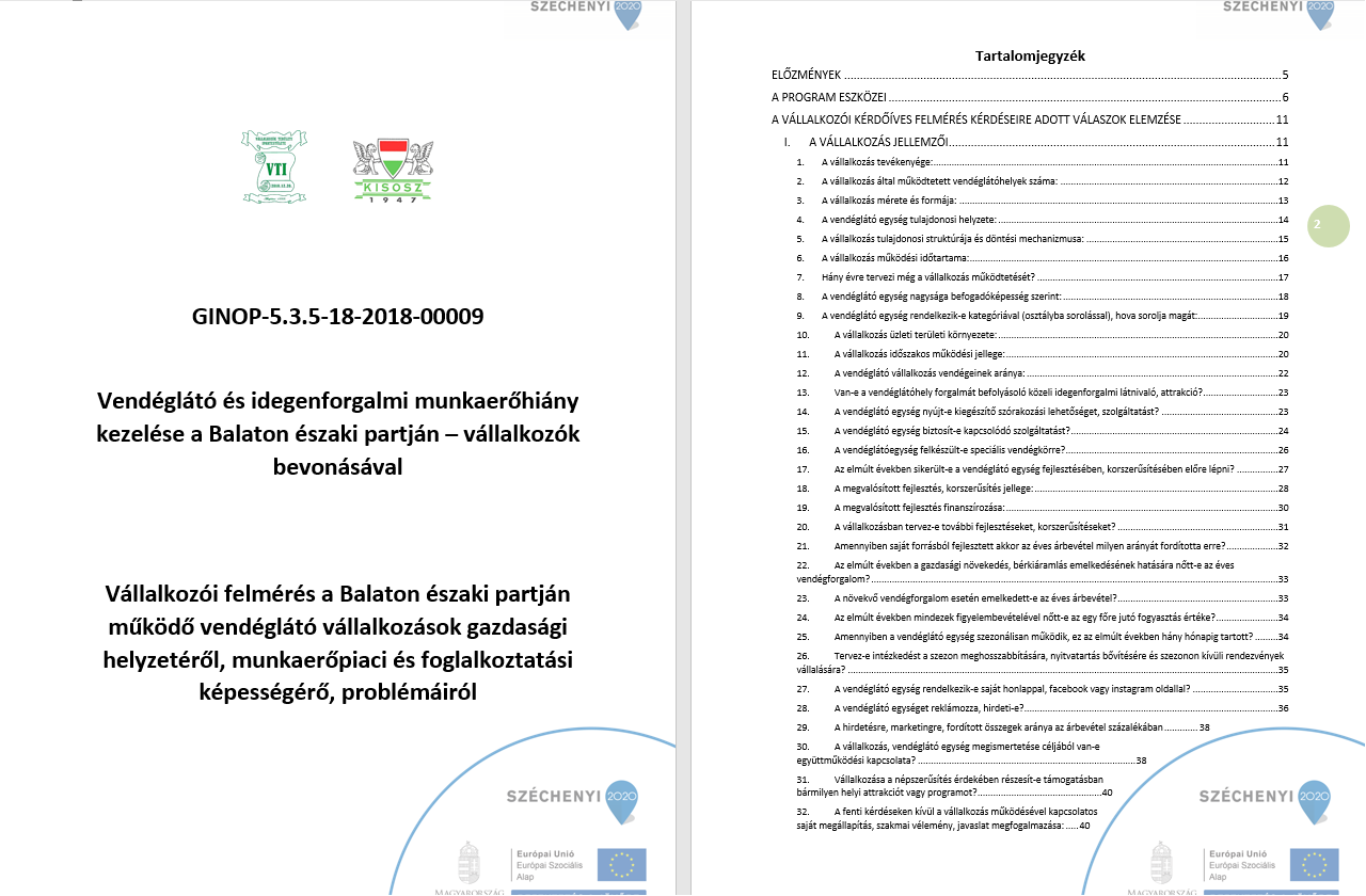 Vállalkozói felmérés a Balaton északi partján működő vendéglátó vállalkozások gazdasági helyzetéről, munkaerőpiaci és foglalkoztatási képességérő, problémáiról